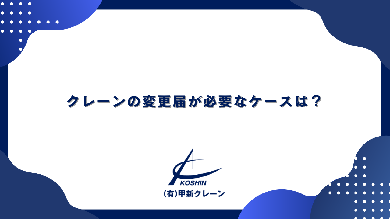 クレーンは建設現場や工場などで重量物を運搬するのに欠かせない機械ですが、その使用には安全性が非常に重要です。クレーンの主要部分を変更する際には、労働安全衛生法に基づくクレーン等安全規則によって、所轄の労働基準監督署への変更届の提出が義務付けられています。この記事では、どのような場合にクレーンの変更届が必要になるのかを詳しく解説します。