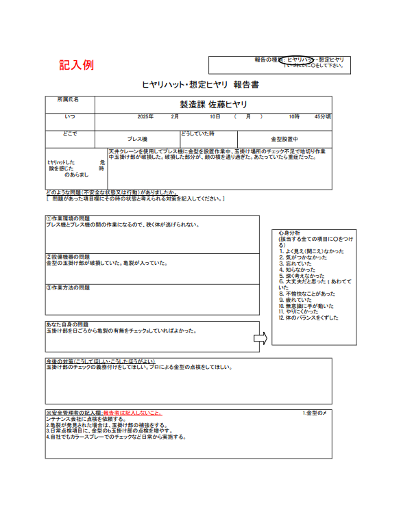 ヒヤリハット報告書の例