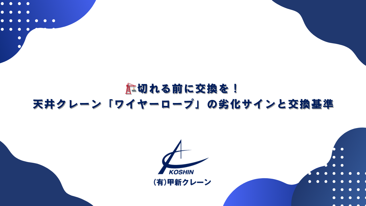 私たち有限会社甲新クレーンは、天井クレーンのスペシャリストとして、ワイヤーロープの適切な交換時期を判断するための法令上の基準と、具体的な劣化サインについて解説します。
